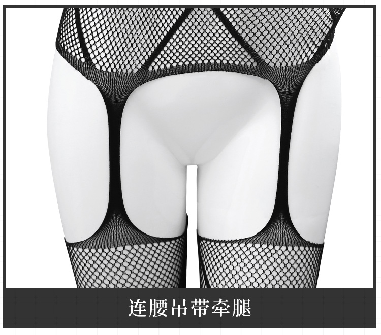 免费领假式马甲束腰网眼连身袜 低胸一字领 开裆露臀